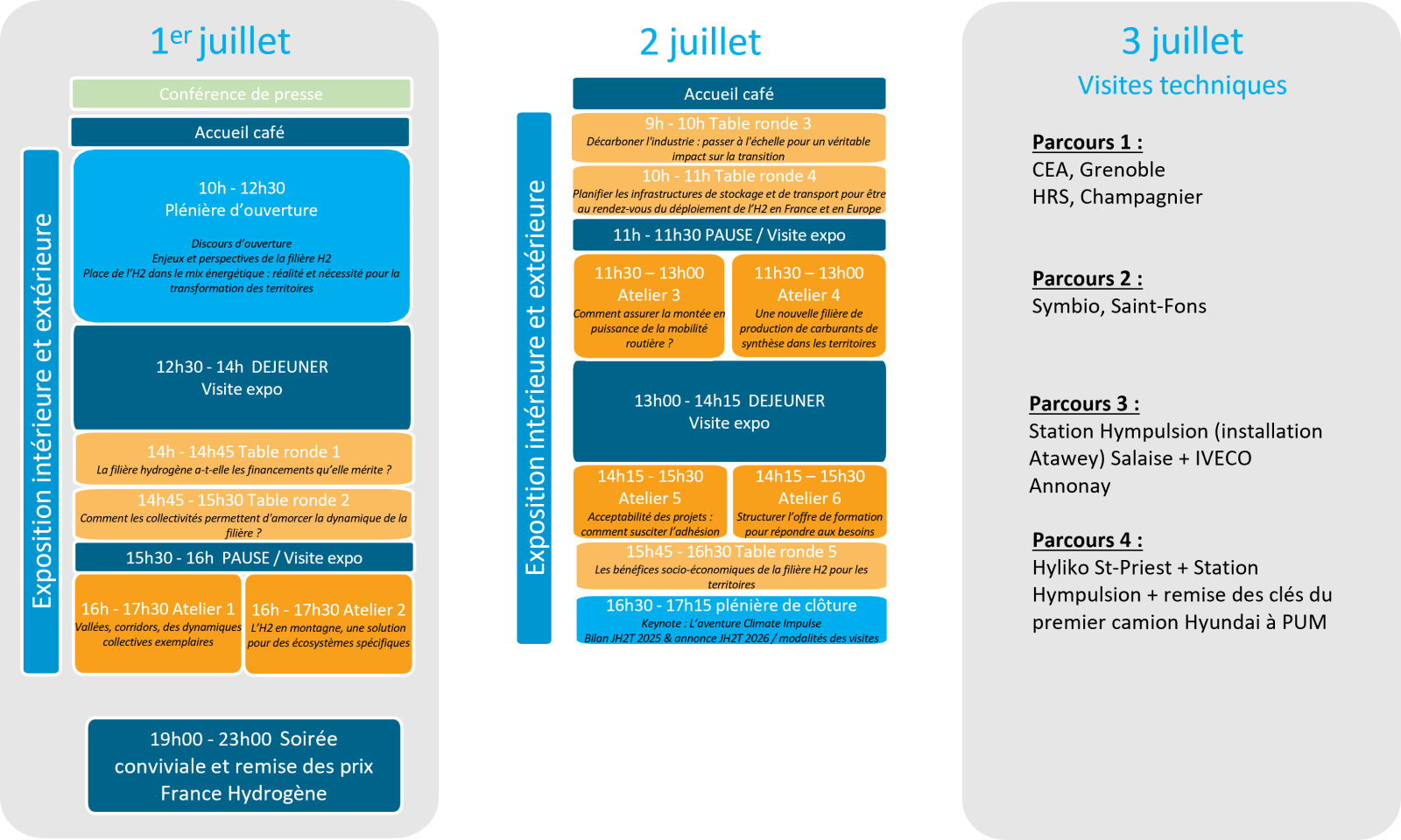 L'hydrogène en montagne, une solution pour des écosystèmes spécifiques (Salles 1 à 5) Les effets du changement climatique et de l'utilisation massive de combustibles fossiles dans les écosystèmes de montagne doivent inciter les acteurs à renforcer les mesures de sobriété énergétique, d'efficacité énergétique et de développement des énergies renouvelables. L'hydrogène présente de nombreux avantages pour progresser dans cette transition et son utilisation dans cet écosystème spécifique est totalement adapté pour de multiples usages : mobilité, industries, exploitation de zones touristiques, etc. L'objectif est de favoriser l'émergence d'un écosystème hydrogène de montagne, en connectant acteurs publics et privés, producteurs et utilisateurs potentiels d'hydrogène. Avec les interventions de :